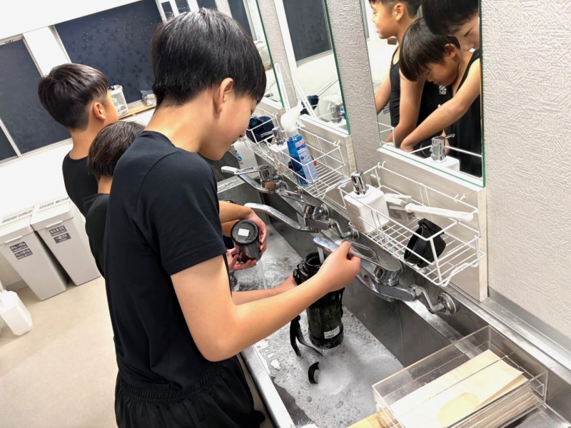 自分たちで洗浄した水筒を準備し、使用したシーツもたたみ、楽しみにしていた朝食からスタートです。今日も朝からお腹いっぱい食べて合宿がスタートしました!