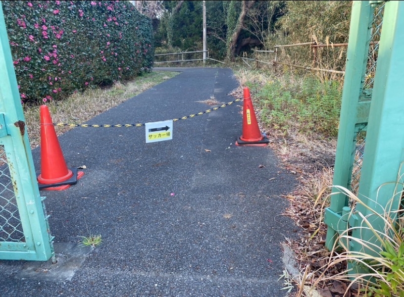 ・グランドへの移動は、徒歩で正門を一度出て左、竹藪の道を抜けて移動して下さい。(添付ファイル参照)