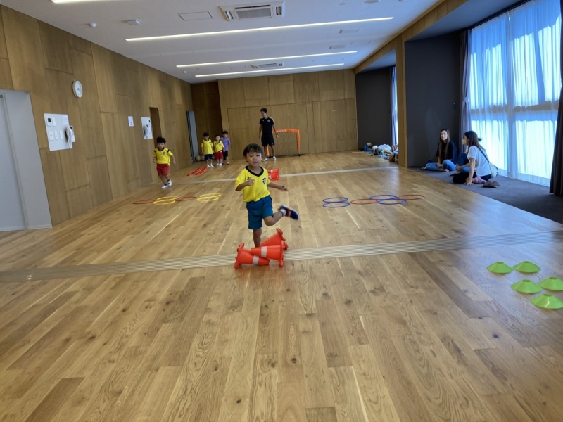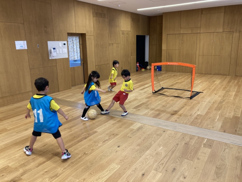 なお、今週の火曜日(8日)と水曜日(9日)は雨模様が続いたため室内での活動になりましたが、室内でもたくさんのボールタッチの練習と試合で白熱した時間を過ごすことができました!