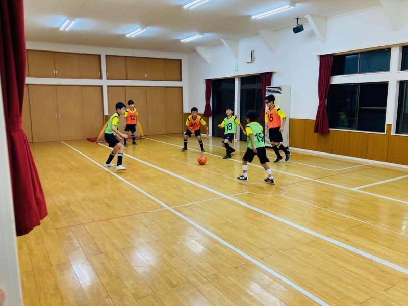 ちなみに、そんな雨の日には、3年生~6年生の高学年選手たちも室内での3vs3を通じて、狭いスペースでコンビネーションを発揮するコツを学んでいます!(写真:右)