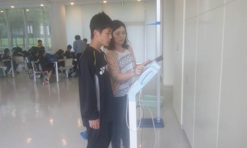測定ではトップアスリートが使用する測定機械と同じもので測定し、緊張している様子でした。
