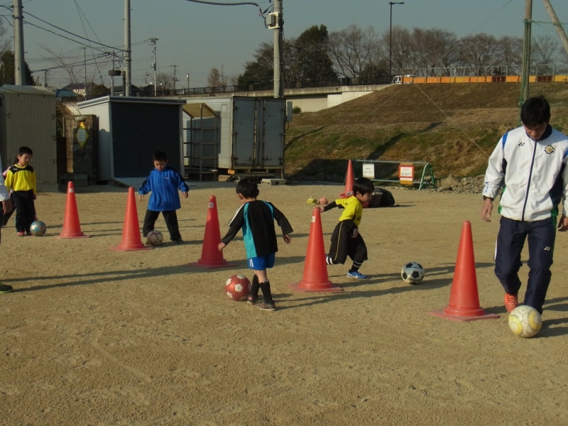きれいな緑の芝の中、キッズ年長クラスの選手達は皆、