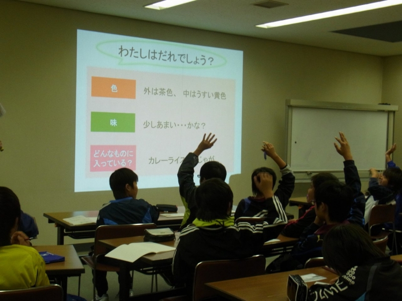 目的は「普段食べている食品の特徴(色・味・におい・どんな料理に使われているかなど)を考え、興味を持つ」でした。