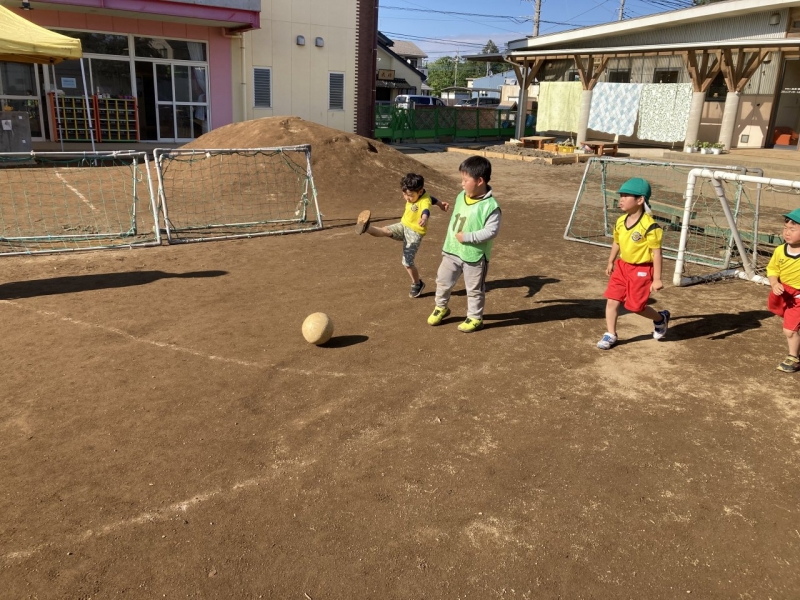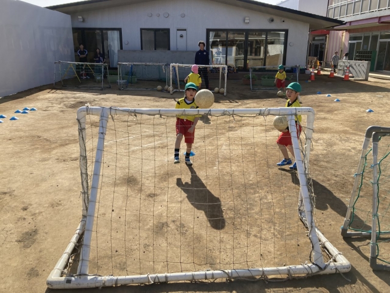 最後は、試合を行い、ゴールを目指して全力でボールを追いかけます。