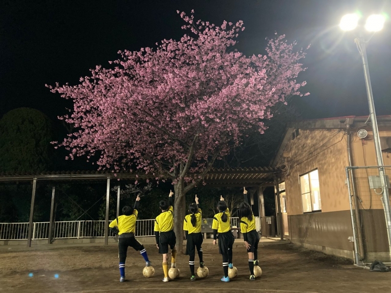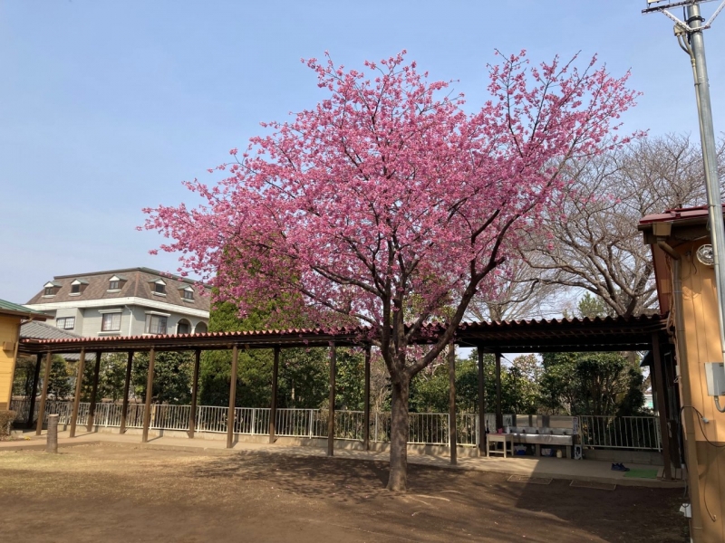 関宿校の選手たちが平日活動している関宿幼稚園では、この季節になると、他の桜の木々より一足早く『河津桜』が満開を迎えます。