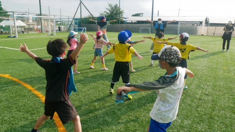 サッカーの練習とともに、様々な身体を動かす運動や、あいさつ、時間を守ること、荷物の整理などにも取り組んでいます。