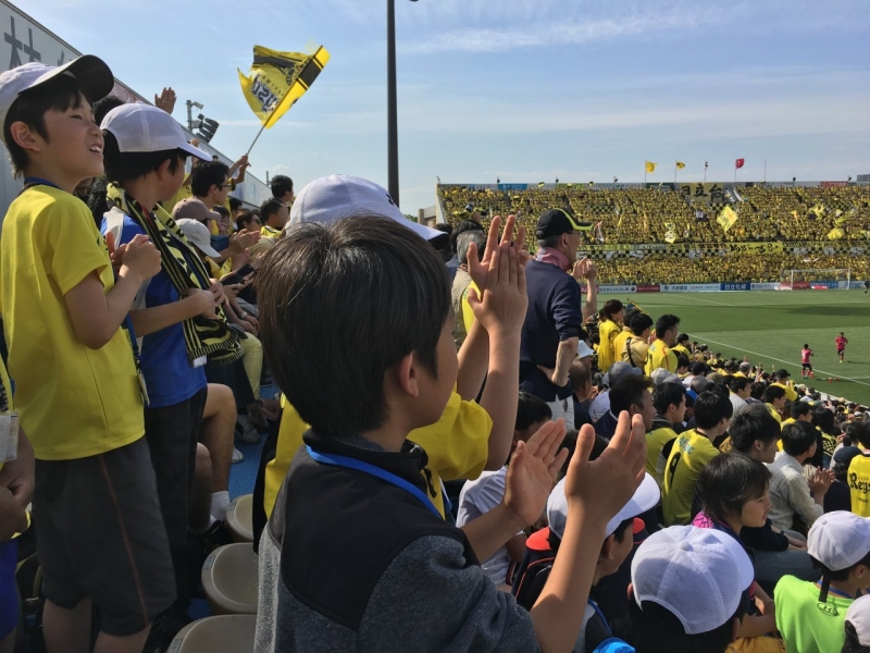 試合が進むと、柏レイソルのチャンスに歓声を上げていました。