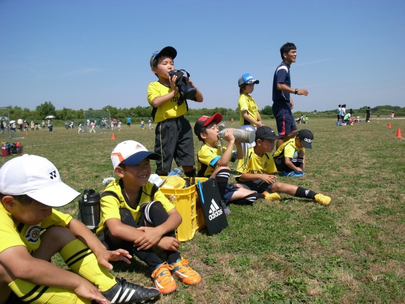 コーチから空になった水筒への水分補給が頻繁に行われていました。