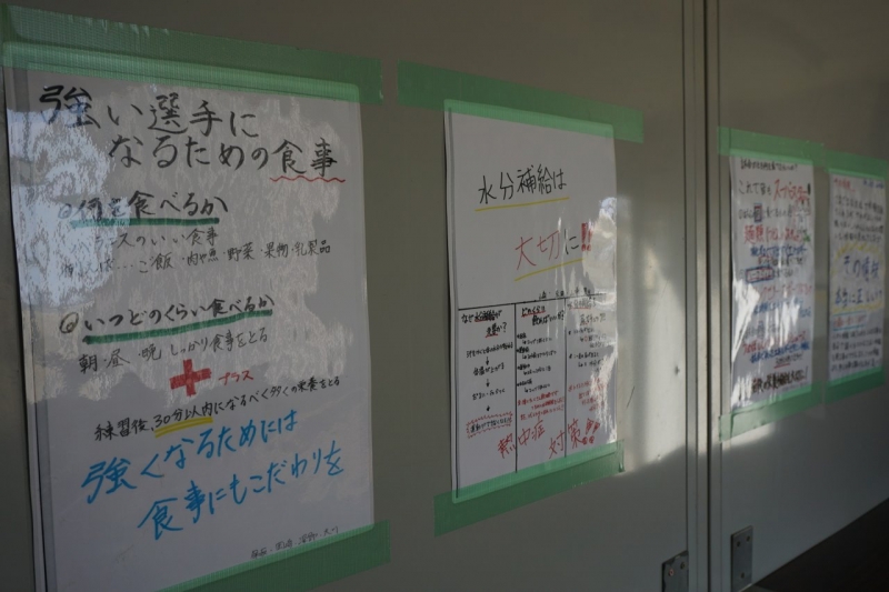 栄養セミナーで後輩へポスターを制作したU‐15選手達。