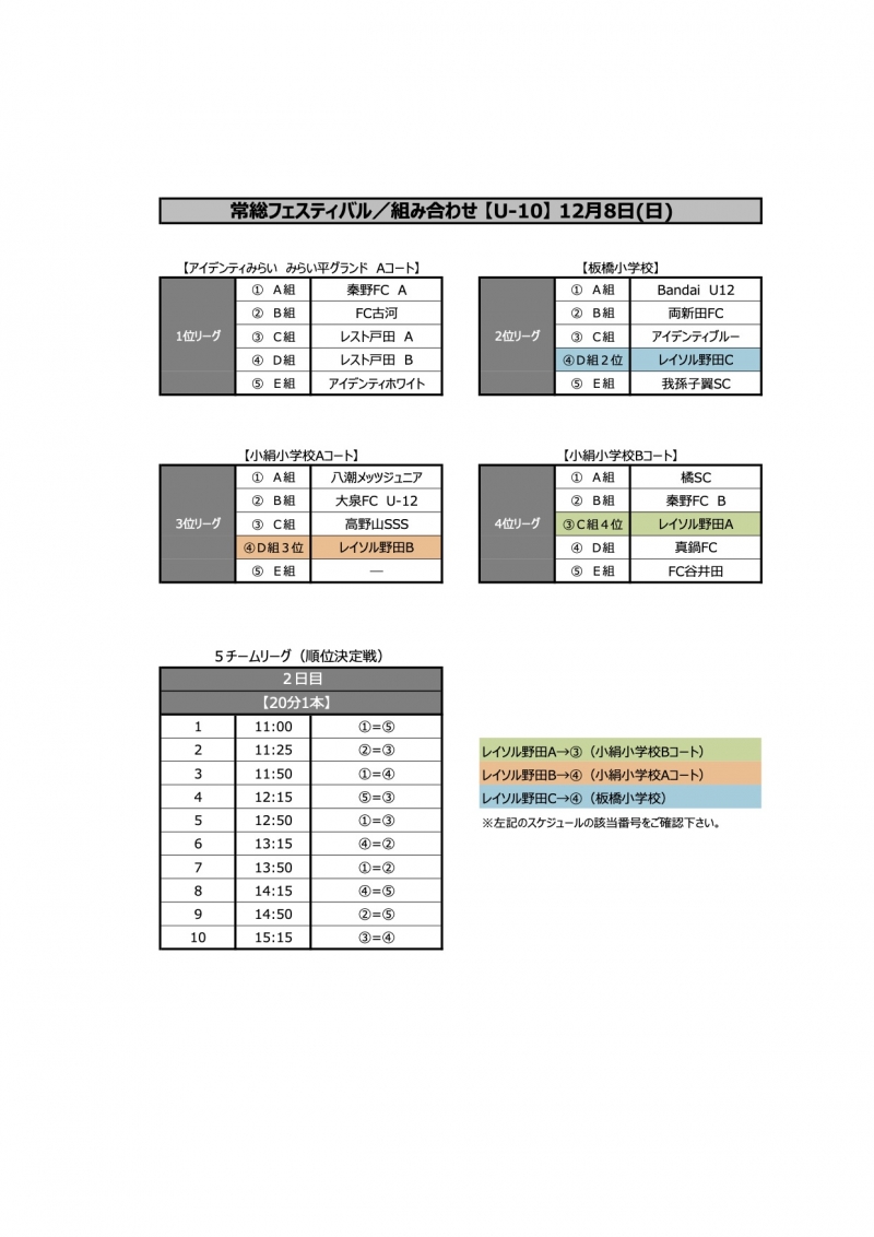 ※解散時刻は、当日の16:30までにレイソル野田HPブログに掲載致します。