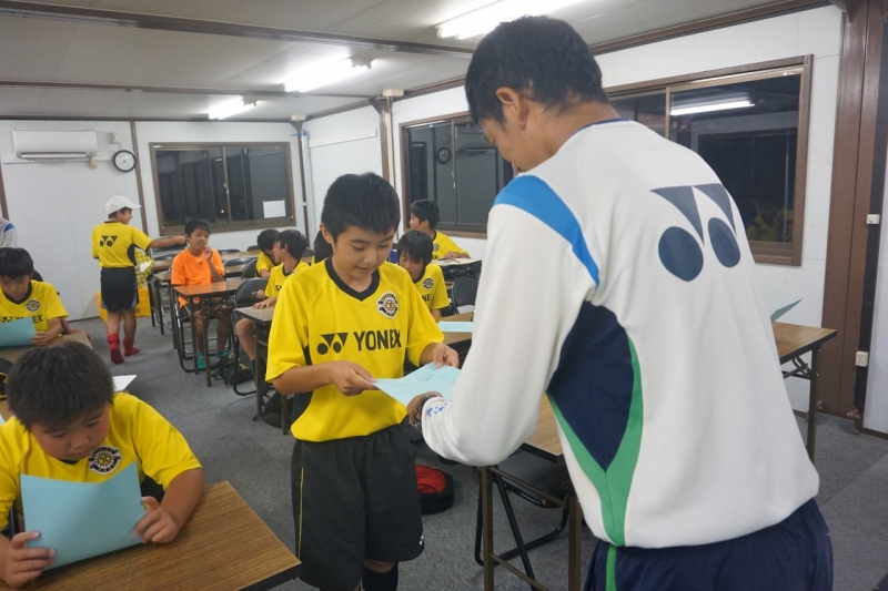 J毎回の活動後のミーティングで、コーチから口頭で選手に変更事項が伝えられています。