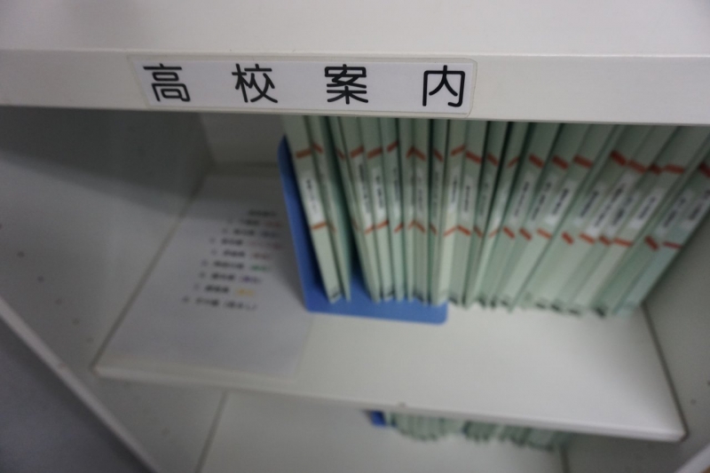 育成棟の「高校案内」の棚には、高校からの情報(高校案内・サッカー部練習会案内)を
