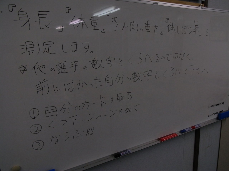 10日~20日にかけて、マスタークラスとJrユース選手が「体組成測定」を行っています。