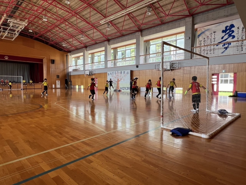 午後は体育館でのトレーニングで昨日のトレーニングマッチからつながりのあるゲームを行い、両チーム白熱したゲームに!