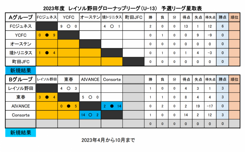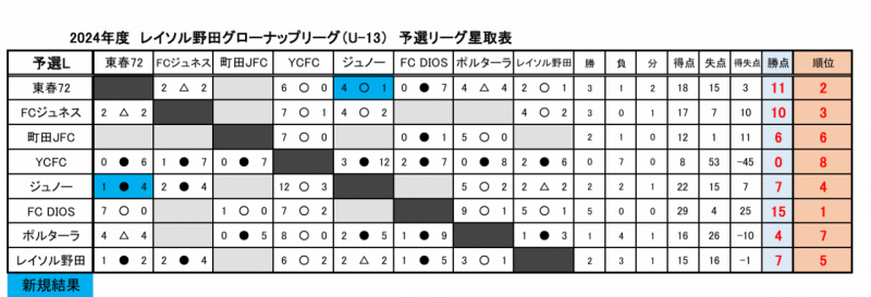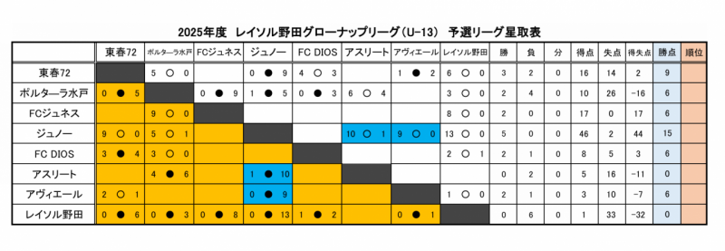 | 10 | 7月13日 | ポルターラ | 0 - 5 | 東春72 |