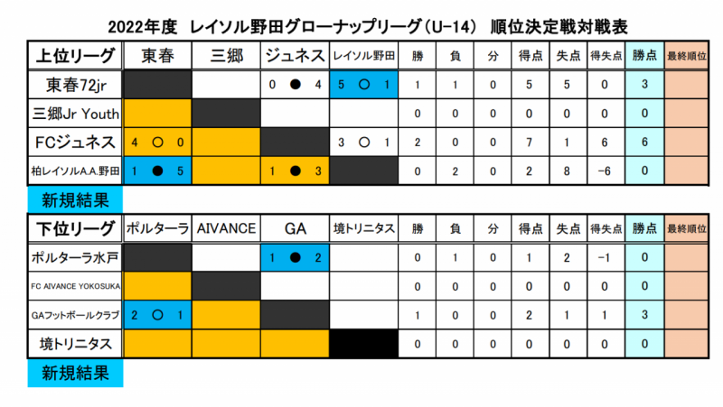 | 8 | 9月27日 | レイソル野田 | 1 - 2 | FCジュネス |