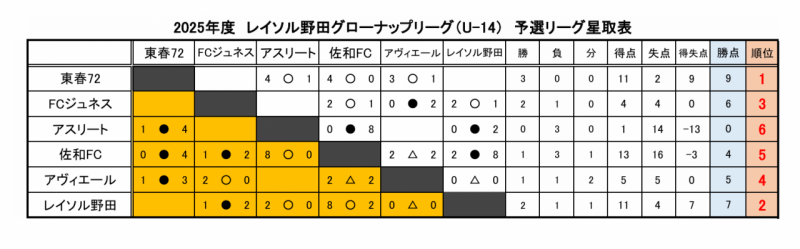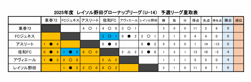 | 6 | 6月29日 | 佐和FC | 2 - 2 | アヴィエール |